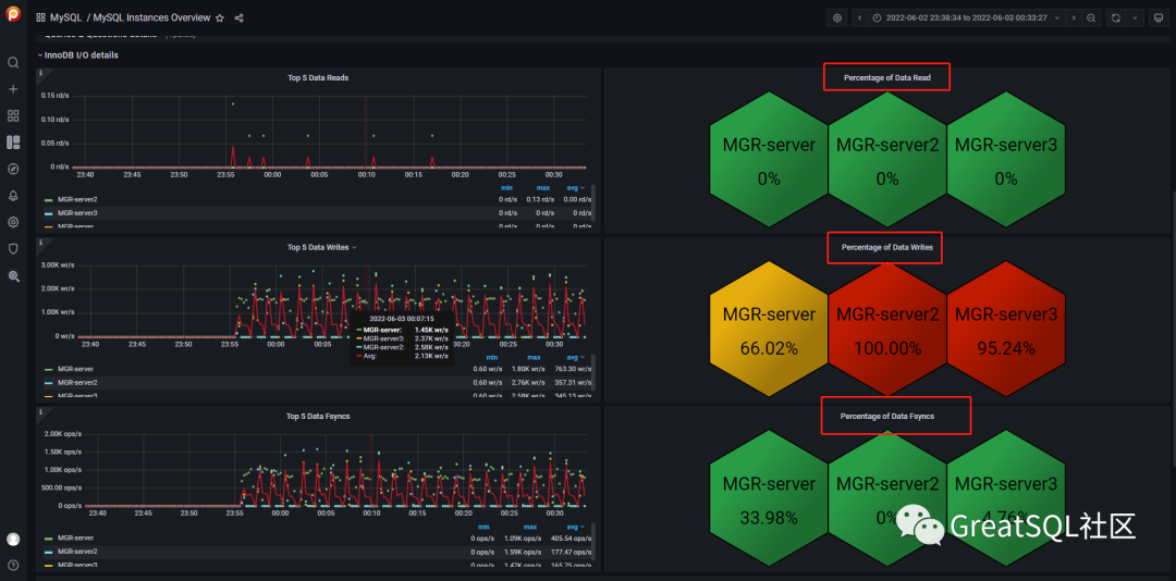 监控MGR组复制的3个节点innodb引擎I/O使用情况