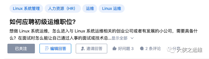 在知乎上有这么一个问题,如何应聘初级运维,关于这个问题,看到回答都比较早了,有些内容放到现在已经比较过时了,这篇文章就来谈谈这个问题。