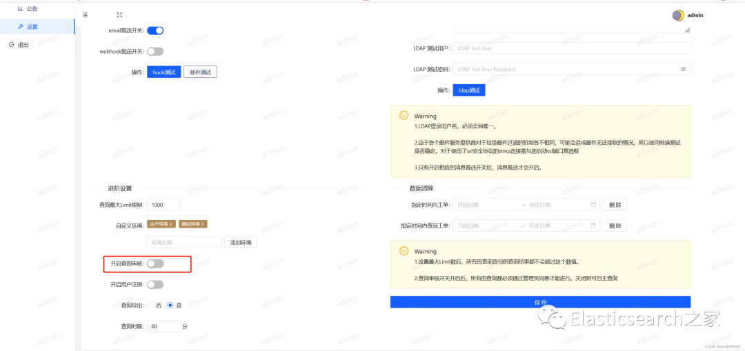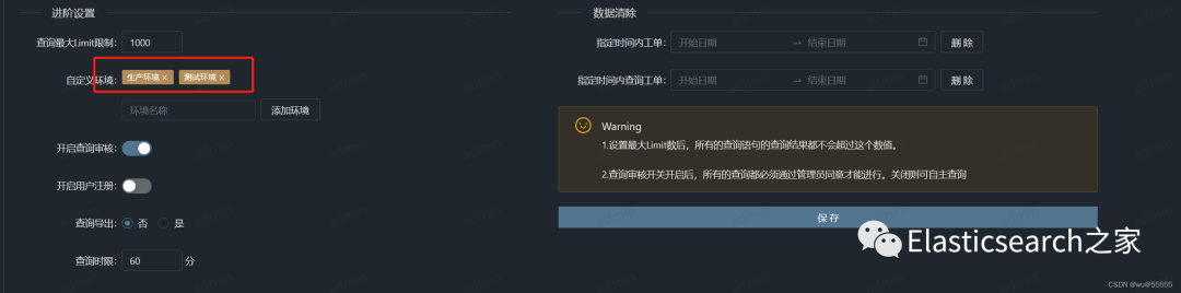 中,我们可以设置环境名称,一般命名为各个mysql服务的名称,同时可以选择开启查询审核,最后不要忘记点击保存