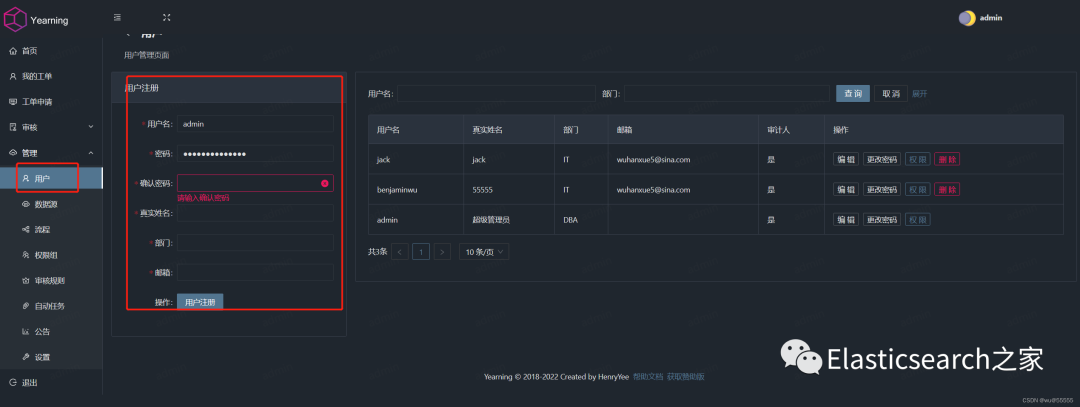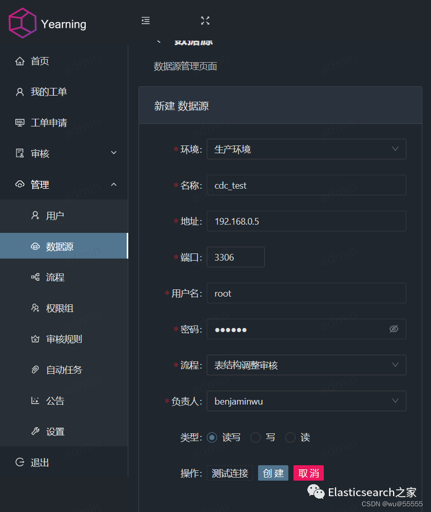 我们可以通过yearning来创建用户,设置权限,规定哪些用户可以查询哪个库,哪些用户可以修改哪个库,查询、修改操作需要经过那些人的审批后才能执行,执行完成的SQL修改语句可以进行回退,可以监控追溯到哪些人执行了哪些SQL。