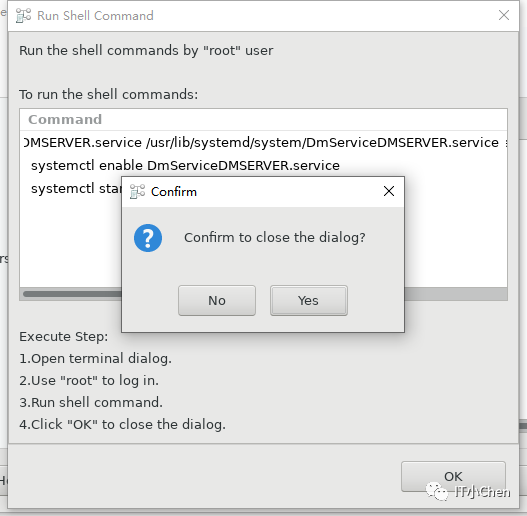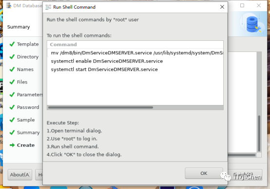 [root@cjc-db-01 ~]# dm8/script/root/root_installer.shMove /dm8/bin/dm_svc.conf to /etcModify the files' mode of DM ServerCreate the DmAPService serviceCreated symlink from /etc/systemd/system/multi-user.target.wants/DmAPService.service to /usr/lib/systemd/system/DmAPService.service.Finished to create the service (DmAPService)Start the DmAPService service