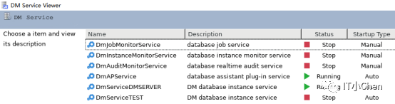 [dmdba@cjc-db-01 tool]$ DmServiceDMSERVER statusDmServiceDMSERVER is stopped[dmdba@cjc-db-01 tool]$ DmServiceDMSERVER startStarting DmServiceDMSERVER: [ OK ]