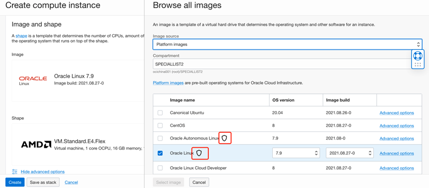 (1)在选择镜像时,需要选择有盾牌图标的兼容镜像,如下: