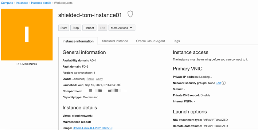 (2)若对受保护实例进行故障排除,请不要终止实例,并记下实例OCID和捕获Serial Console控制台的日志文件。