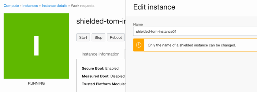 若启用了Measured Boot并且启动顺序不正确,则实例将启动,但实例详情页出现一个红色盾牌。