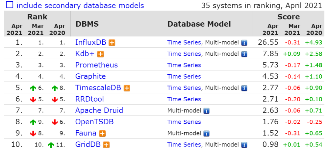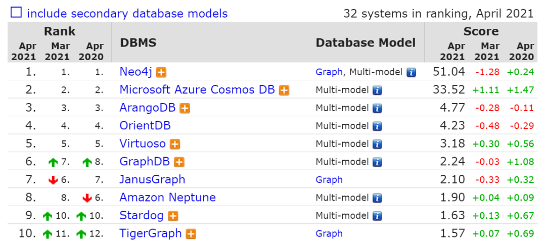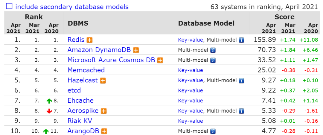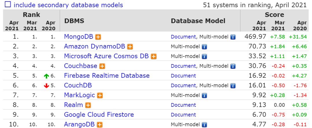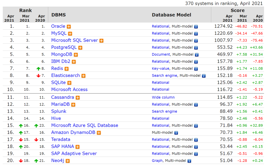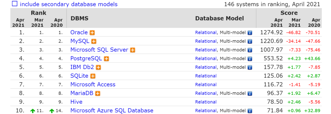 DB-Engines 4 月份流行度排行已更新(基于 3 月份的整体数据变化)。