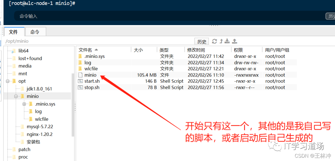 opt/minio 安装目录,运行的文件保存夹地址,minio的配置文件