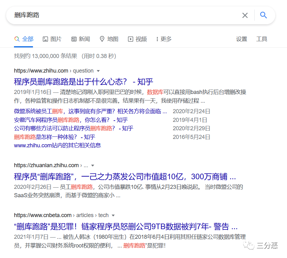 ,可以看到很多程序员删库跑路的讨论和新闻。
