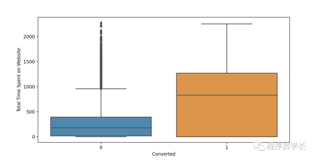 数据中没有异常值。 在网站上花费更多时间的潜在客户更有可能被转化。