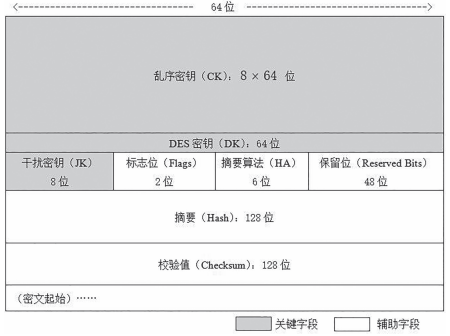 (8)校验值(Checksum)。校验值是密文部分的校验值,所用散列算法由“摘要算法”字段指定,长 128 位。