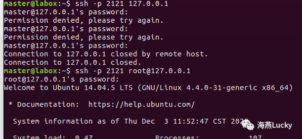 2.如果要访问22端口,先要检查openssh-server是否已安装,没有就需要先进行安装,然后才能转发22端口。根据不同的系统使用不同的命令安装。试验中,Ubuntu里面已经安装好了的。