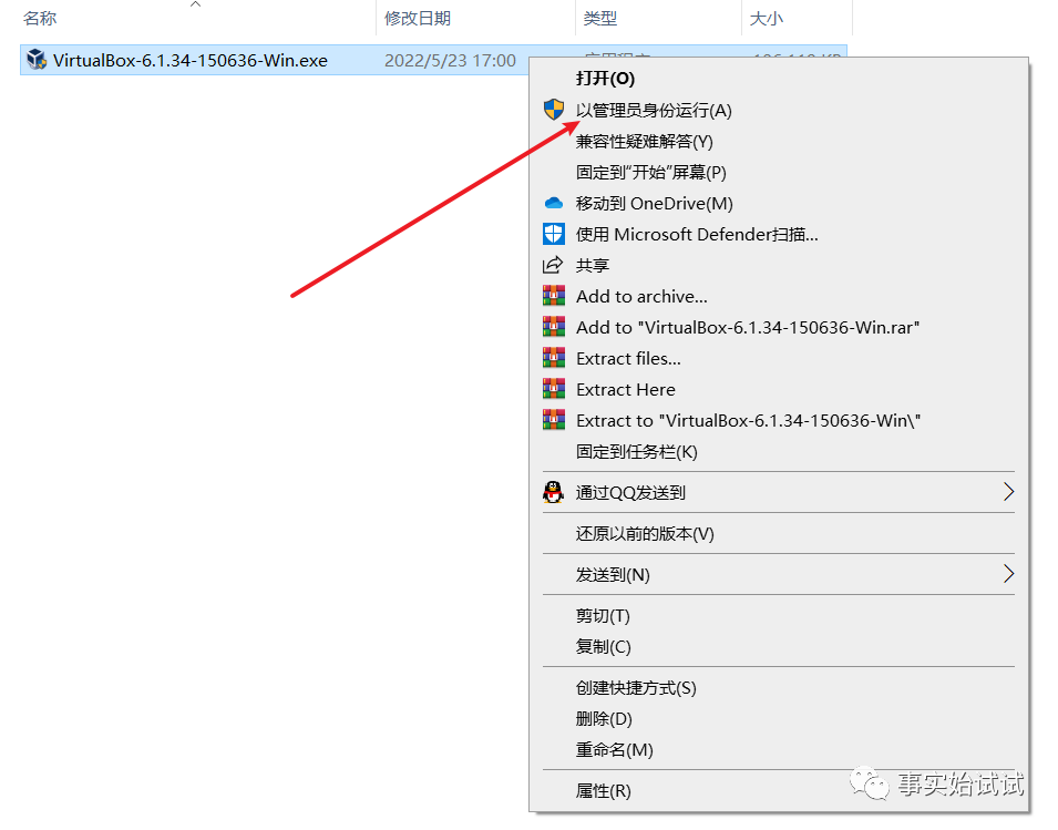 2.右键点击下载完成的安装程序文件,选择“以管理员身份运行”;