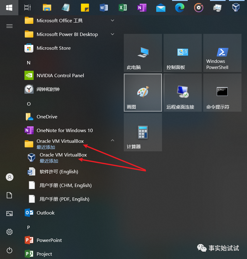 12.完成安装需要重启电脑,在开始菜单中打开“Oracle VM VirtualBox”;