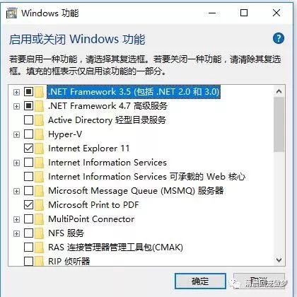 解决方式:进入控制面板->程序->启用或关闭Windows功能