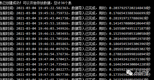 print("表已创建成功!可以开始存放数据,总计" + str(num) + "个表")