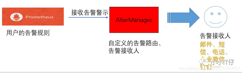 Prometheus只支持负责生成告警提示,具体的告警行为由另外一个独立的程序