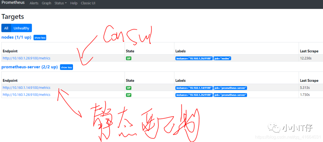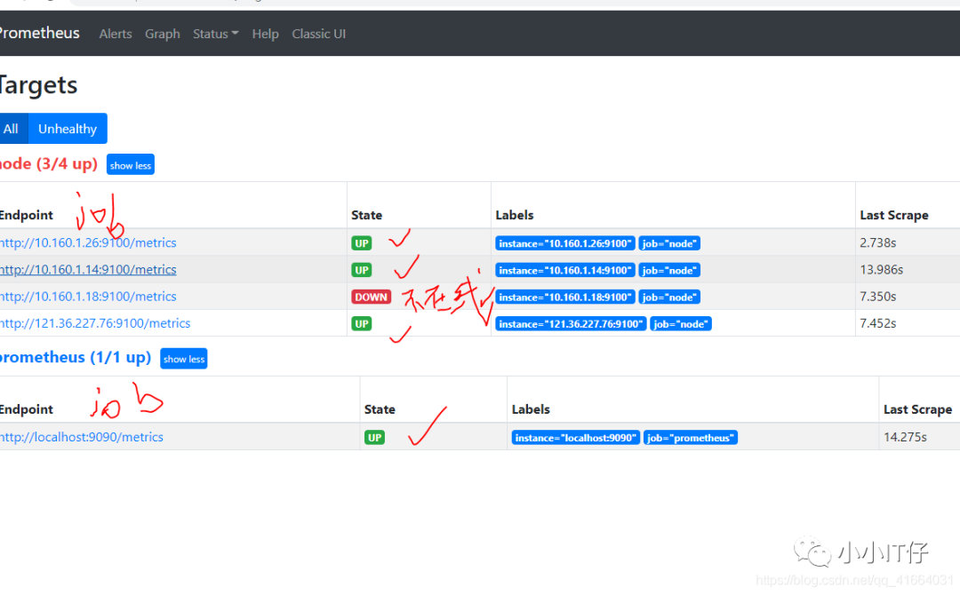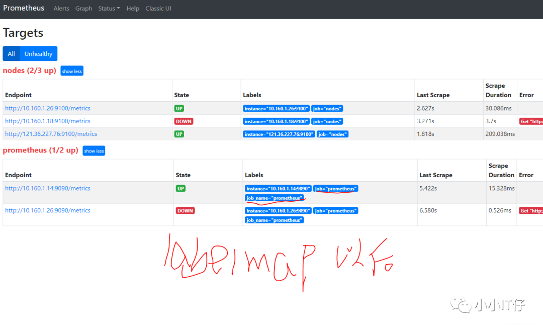 关闭一个node_exporter和一个prometheus-server,看web界面的变化和告警消息的接收情况