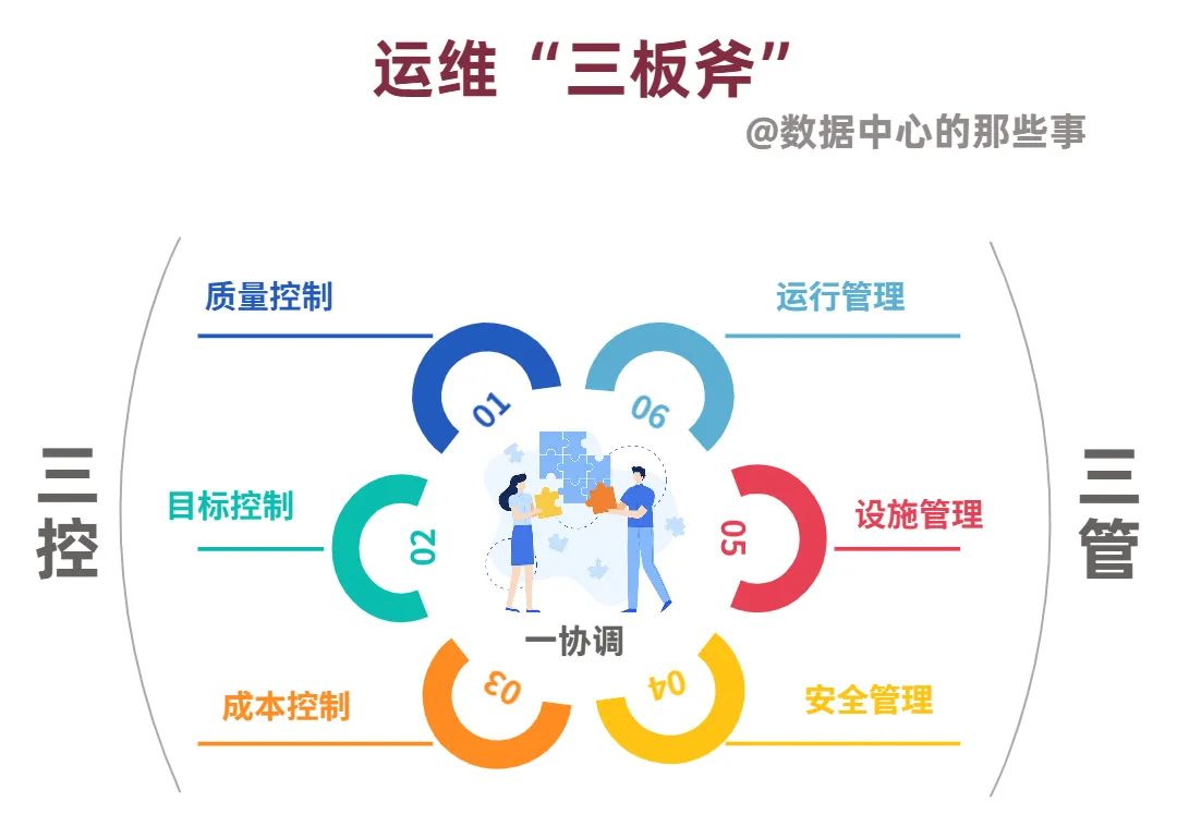 质量控制:在数据中心运维过程中建立完善的质量管理体系,是保障以上数据中心场地基础设施运维趋于卓越的重要因素和手段。也就是PDCA。全面质量管理的思想基础和方法依据就是PDCA循环。PDCA循环的含义是将质量管理分为四个阶段,即Plan(计划)、Do(执行)、Check(检查)和 Act(处理)。目标控制:确定运维管理目标。制定目标时,应综合考虑数据中心所支持的应用的可用性要求、数据中心场地基础设施设施的等级、容量等因素。目标宜包括可用性目标、能效目标、可以用服务等级协议(SLA)的形式呈现。确定SLA并控制。成本控制:数据中心运行维护成本包含人员成本、能源成本、设备折旧或租金等。需制定运维计划、节能计划等成本管理规定等文件去控制数据中心运行成本。