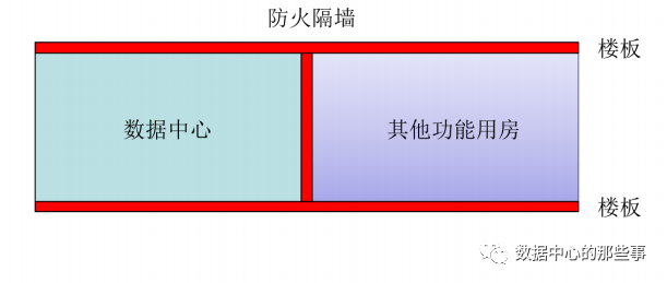 当数据中心与其他功能用房在同一个建筑内时,数据中心与建筑内其他功能用房之间应采用耐火极限不低于2.0h的防火隔墙和1.5h的楼板隔开。