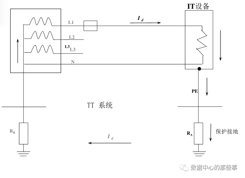 TT系统有一个直接接地点,电气装置的外露导电部分接至电气上与低压系统接地点无关的接地装置。