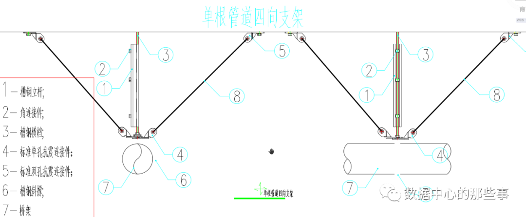 2.5、抗震支架的布置应严格根据GB50981-2014《建筑机电工程抗震设计规范》第8.3章的要求设置;2.6、管线水平地震力综合系数按GB50981-2014《建筑机电工程抗震设计规范》第8.2.4要求,并参照3.4.5条和表3.4.1的参数取用进行计算。当计算结果不足0.5时取0.5,超过0.5按实际计算值;2.7、抗震支架受力的力学验算应包括:支架与建筑结构连接验算(含锚栓和连接件);杆件受力验算(含受拉和受压校核);2.8、抗震支架吊杆及斜撑的长细比要求应满足GB50981-2014《建筑机电工程抗震设计规范》第8.3.8条的要求。2.9、电气管路不应穿过抗震缝,当必须穿越抗震缝时应符合下列规定:1)、采用金属导管、刚性塑料导管敷设时宜靠近建筑物的下部穿越,且应在抗震缝两边各装一个柔性管接头;2)、电缆梯架、电缆槽盒、母线槽盒在抗震缝两侧应设置伸缩节;3)、抗震缝的两端应设置抗震支撑节点并与结构可靠连接;2.10、管道穿过内墙或楼板时,应设置管套;管套与管道间的缝隙,应采用柔性防火材料封堵;