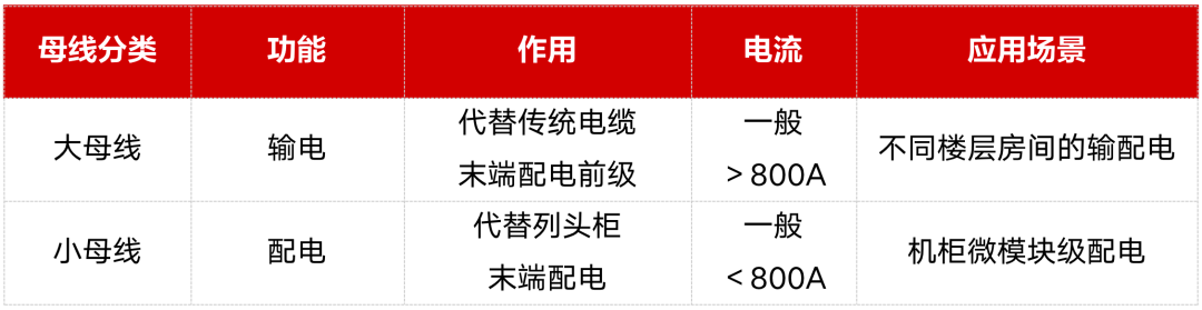 因配电柜与PDU产品相对比较成熟,这里不做详细赘述,本文将重点介绍小母线,在介绍小母线前,为了避免与大母线混淆,这边先做一个简单对比介绍:
