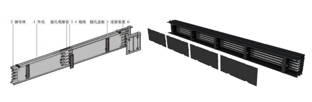 其母线槽一般采用非型材设计,内部铜排与母线槽采用夹具固定,母线槽中间会有一定的隔段,插接箱只能在特点位置安装或工厂提前预制好位置,如下图所示。