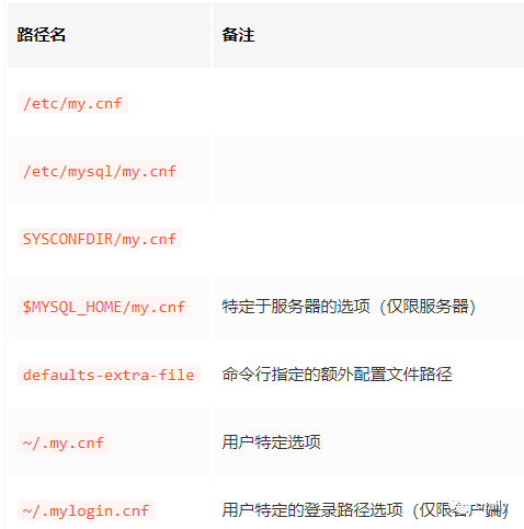 配置文件,这个配置文件中只能放置关于启动服务器程序相关的选项(其他的配置文件既能存放服务器相关的选项也能存放客户端相关的选项,.mylogin.cnf 除外)最后两个以