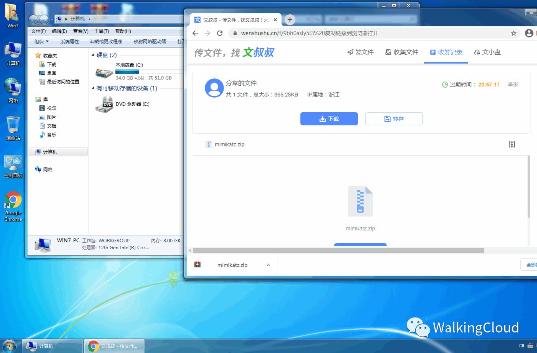 并上传到自己的电脑,本地使用mimikatz进行分析