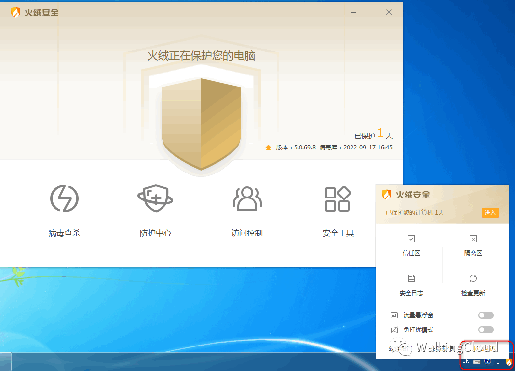 1、安装杀毒安全软件,例如火绒,并且设置火绒退出密码