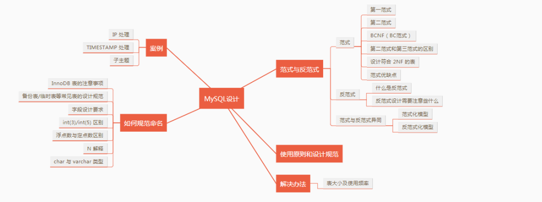 以高性能为目标,库表设计以范式为主,根据特殊业务场景使用反范式,允许必要的空间换时间。 规范数据库的使用原则,统一规范命名,减少性能隐患,减少隐式转换。 高性能表设计的原则:合适的字段、合适的长度、NOT NULL。 从不同角度思考 IP、timestamp 的转换,拓宽设计思路。 规范的命名可提高可读性,反范式设计可提高查询性能。