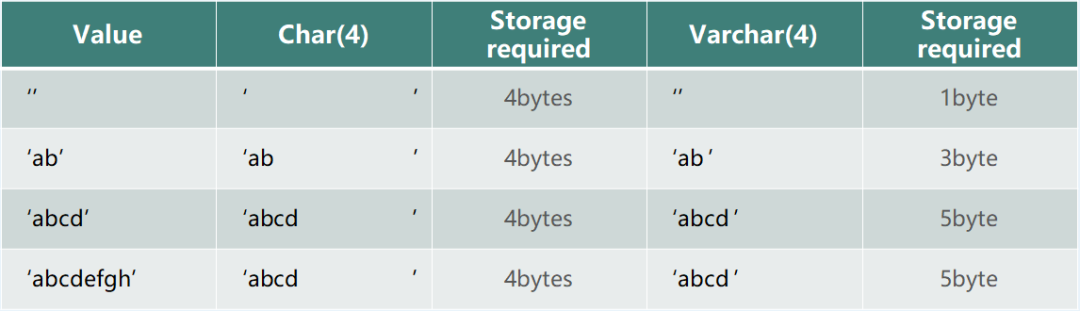 Char 和 Varchar 占用空间的对比,如下图所示。