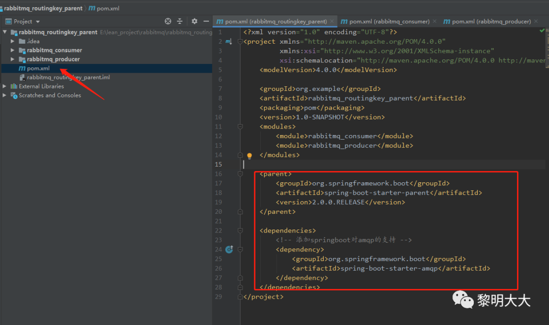 <parent><groupId>org.springframework.boot</groupId><artifactId>spring-boot-starter-parent</artifactId><version>2.0.0.RELEASE</version></parent><dependencies><dependency><groupId>org.springframework.boot</groupId><artifactId>spring-boot-starter-amqp</artifactId></dependency><dependency><groupId>org.projectlombok</groupId><artifactId>lombok</artifactId><version>1.18.8</version></dependency></dependencies>