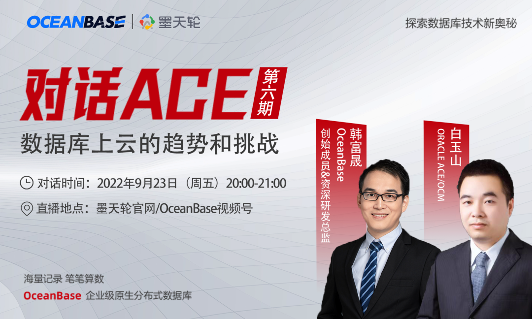 相对于本地部署的数据库,数据库上云成为一大发展趋势。基于此,本期对话ACE 邀请了 Oracle ACE/OCM 白玉山和 OceanBase 创始成员&资深研发总监韩富晟两位老师就“数据库上云的趋势和挑战”展开了对话。