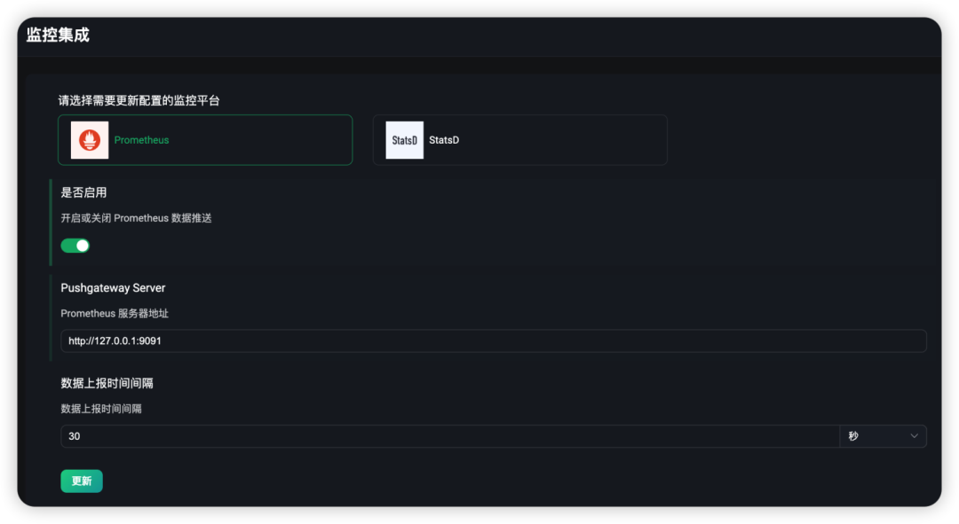 同时 EMQX 支持用户将指标集成至自己熟悉的监控与告警技术栈,通过配置文件或 Dashboard 上轻点鼠标即可在集成 Prometheus、Datadog 等系统。