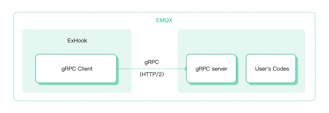 ExHook(多语言扩展钩子)基于 gRPC 框架, 允许用户使用其他编程语言(如 Python、Java、Node.js 等)直接向 EMQX 系统挂载钩子,以接收并处理 EMQX 系统的钩子事件,达到扩展和定制 EMQX 的目的。