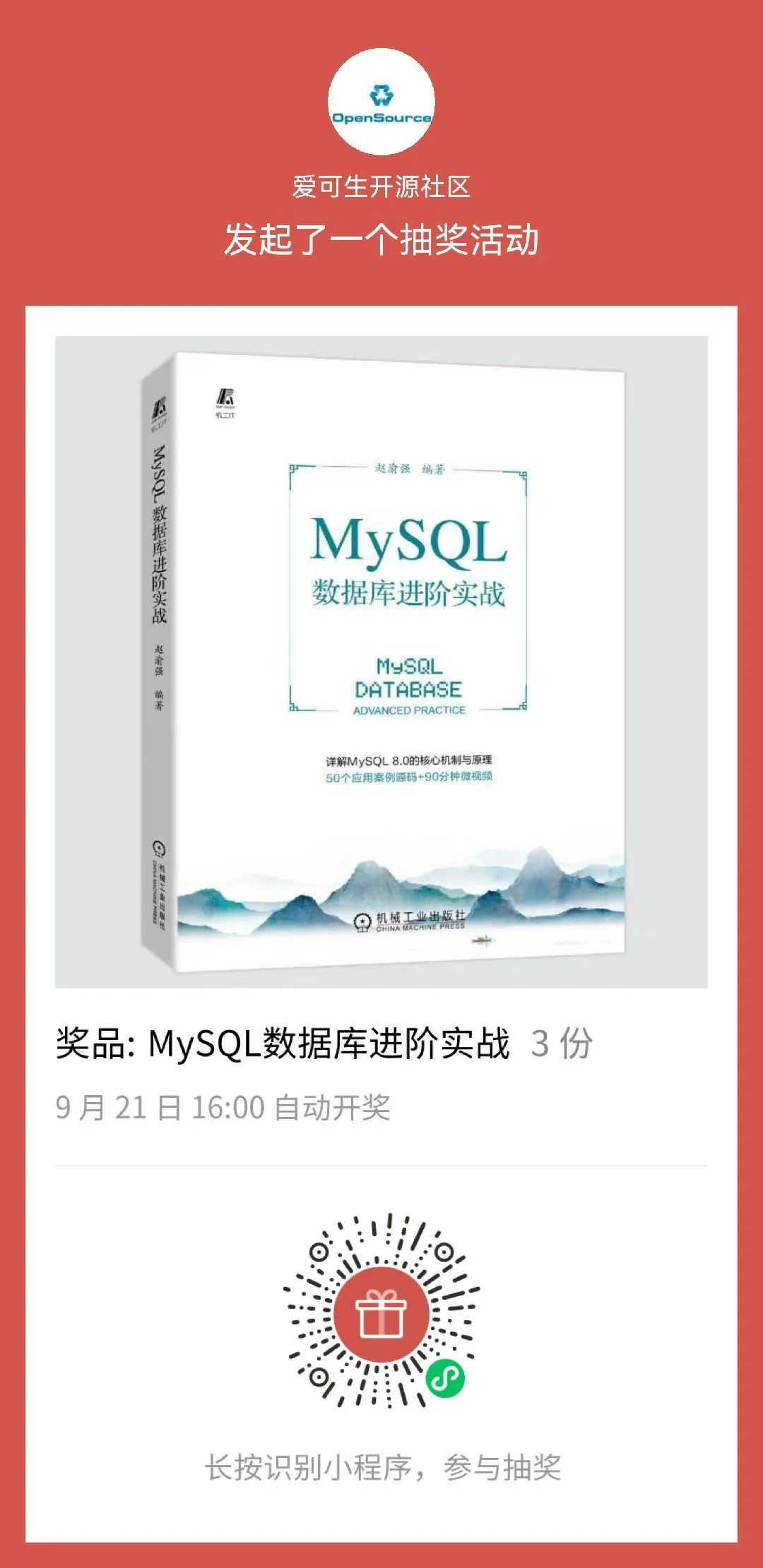 雍正大人下旨:爱可生开源社区定期以抽奖或者其他活动方式送出精心挑选的图书,以此来回馈一直支持我们的小伙伴们;