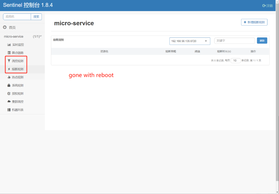 当微服务重启以后所有的配置规则都会丢失,其中的根源是默认微服务将 Sentinel 的规则保存在 JVM 内存中,当应用重启后 JVM 内存销毁,规则就会丢失。