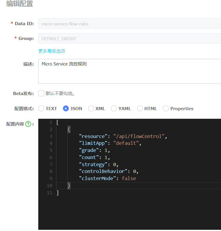 micro-service-flow-rules的配置信息,并将其作为流控规则。