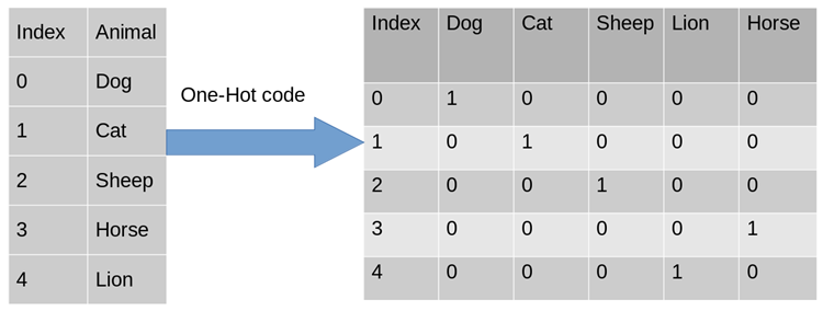 为了解决上述问题,其中一种可能的解决方法是采用独热编码(One-Hot Encoding)。独热编码,又称为一位有效编码。其方法是使用N位状态寄存器来对N个状态进行编码,每个状态都由他独立的寄存器位,并且在任意时候,其中只有一位有效。可以这样理解,对于每一个特征,如果它有m个可能值,那么经过独热编码后,就变成了m个二元特征。并且,这些特征互斥,每次只有一个激活。因此,数据会变成稀疏的。