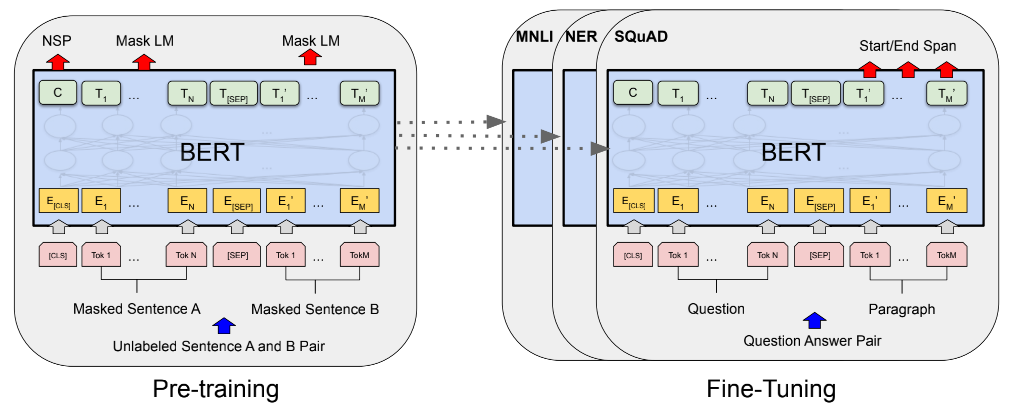 掩藏语言模型(Masked Language Model,MLM)通过将单词掩盖,从而学习其上下文内容特征来预测被掩盖的单词 相邻句预测(Next Sentence Predication,NSP)通过学习句子间关系特征,预测两个句子的位置是否相邻