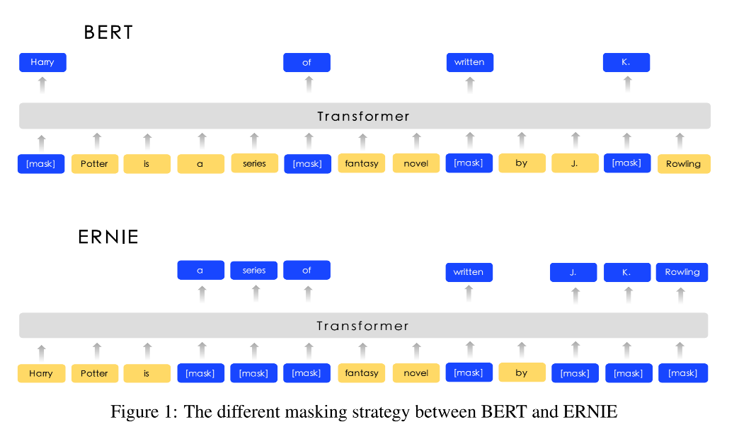 利用中文分词,将组成一个完整词语的所有单字同时掩盖。ERNIE