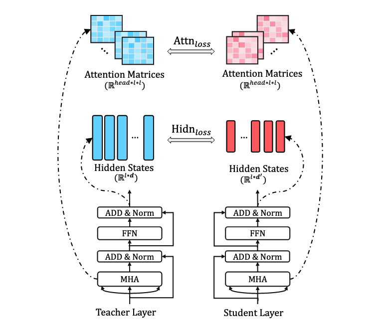 为BERT的嵌入层、输出层、Transformer中的隐藏层、注意力矩阵都设计了损失函数,来学习 BERT 中大量的语言知识。