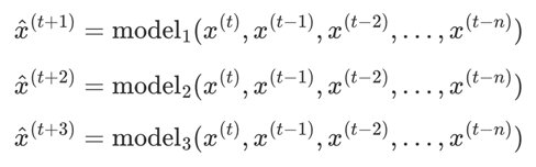 多步直接预测的逻辑是训练多个模型,每个模型负责预测未来一个时间步的值。