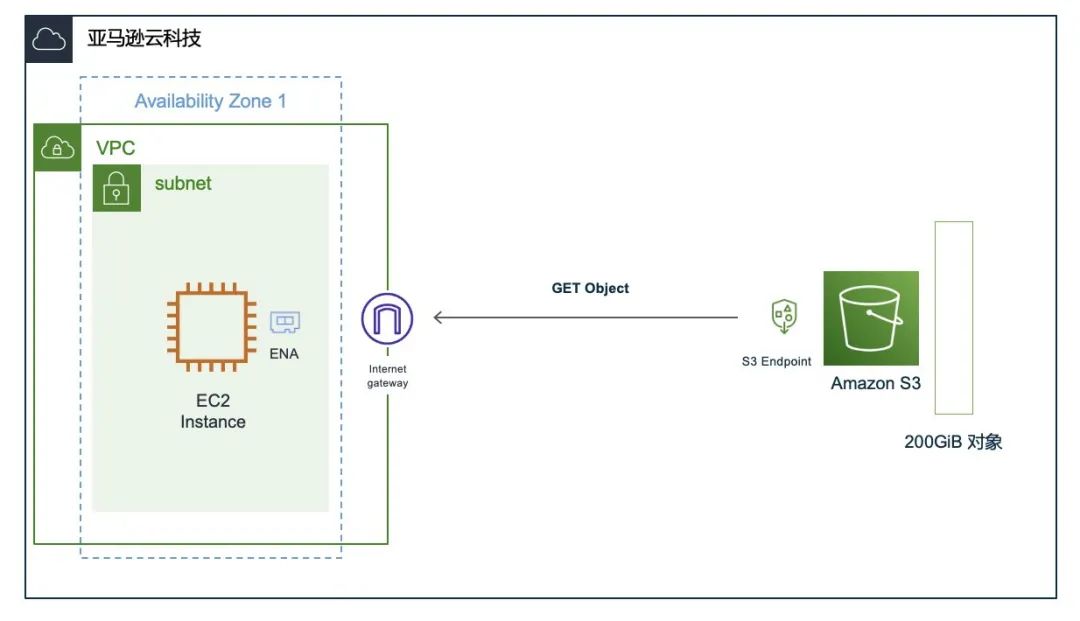我们的既定目标是:“将1个200 GiB 的对象存储在 S3 上,使用单进程应用,以最快的速度把这个对象下载到 EC2 上。”
