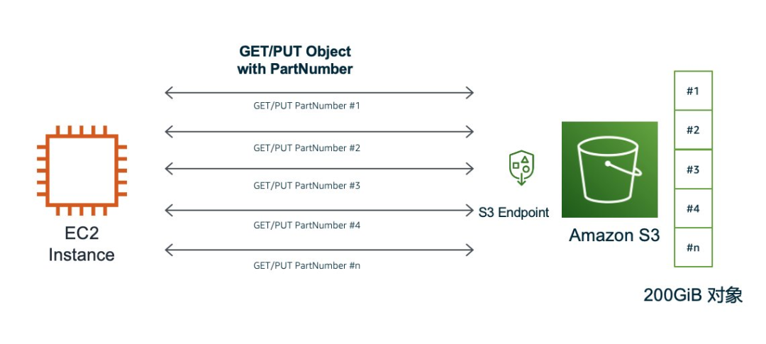 对于 S3 来说在上传和下载路径都可以对单个对象进行分片操作,在上传路径,S3 通过 Multipart Upload 实现单个大对象的分片上传。
