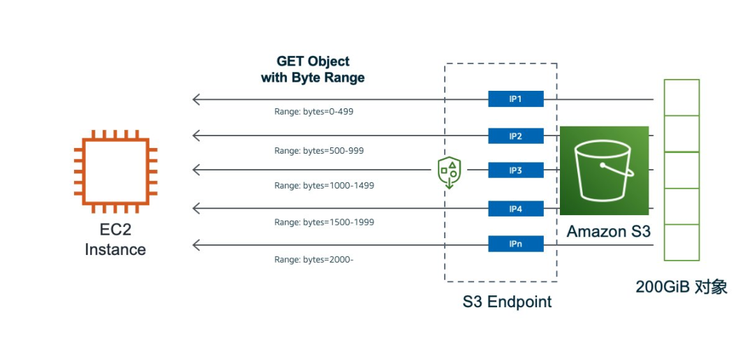 图:使用多个 IP 地址从 S3 按字节区间下载对象
