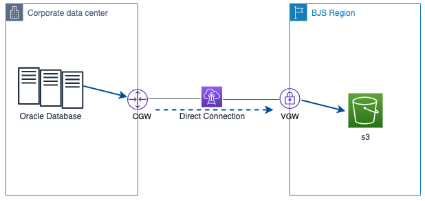 在企业环境下,混合云架构是一种常见的架构,理想环境下摄取层的传输场景是通过 Apache Sqoop 或 DMS 使用网络专线将本地 Oracle 数据库数据迁移到 s3 存储桶,再进行数据分析。