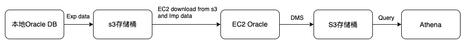 使用 Oracle Exp 将本地 Oracle 数据库数据导出,上传到 s3 存储桶,再在云上 EC2 安装 Oracle 对应版本的数据库,Imp 数据到 EC2 Oracle,使用 DMS 服务将 EC2 Oracle 数据库数据迁移到 s3 存储桶,利用云上的大数据组件 Athena 进行分析。