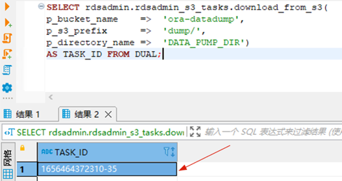 2. 将 ora-datadump 存储桶下 dump 目录中的所有文件下载到 DATA_PUMP_DIR 目录。